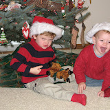 We had our first Christmas celebration of 2007 with Matt's Dad's side of the family. Ian got his first remote control car which he loves and Joel got a noisy hammer, yeah. Really it was great fun. Good food, nice people, the boys loved their gifts and nobody cried the whole way home.